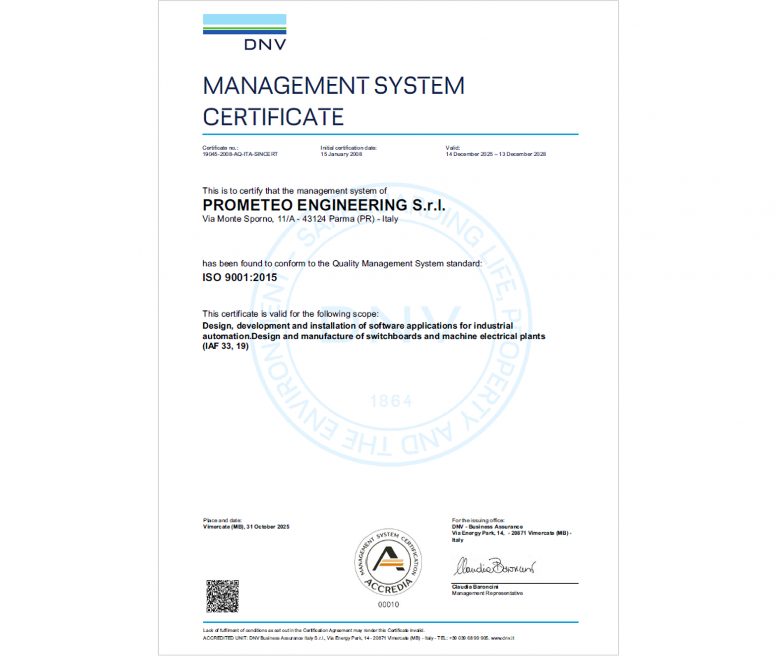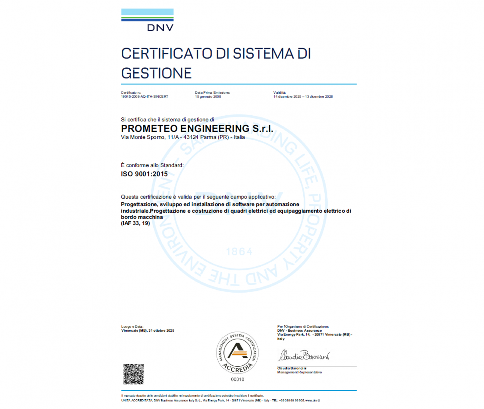 La nostra visione volta al miglioramento continuo delle performance aziendali e all'attenzione per il cliente ci ha consentito di ottenere un Sistema Qualità certificato in accordo alla norma UNI EN ISO 9001:2015.